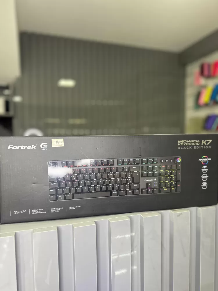 O Fortrek K7 Black Edition é um teclado mecânico projetado para gamers e usuários que buscam alta performance, durabilidade e conforto. Com iluminação RGB multicolorida em efeito Rainbow, design robusto e recursos funcionais, ele é ideal para setups modernos.