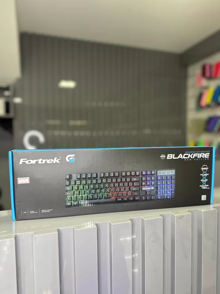 O Fortrek Blackfire é um teclado de membrana desenvolvido para gamers e usuários que buscam uma experiência de jogo imersiva, funcionalidade e um visual arrojado. Com iluminação RGB vibrante, design ergonômico e recursos otimizados, ele é a escolha perfeita para quem quer desempenho e estilo a um custo acessível.
