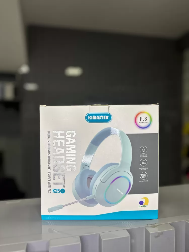 O Headset Gamer Kimaster K25 é a escolha ideal para quem busca uma experiência de jogo imersiva sem a bagunça dos fios, combinando um estilo único com alta performance. O som surround oferece uma vantagem tática crucial, enquanto o microfone com cancelamento de ruído garante uma comunicação impecável. A iluminação RGB adiciona um toque visual vibrante e o design confortável permite horas de uso contínuo, tornando o K25 um periférico completo e estiloso para qualquer gamer.